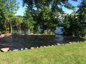 Colonie de renouées du Japon d’environ 200 m² située sur le terrain de la Colonie des Grèves. Dans la pente au-dessus de l’enrochement, elle se trouve directement derrière des chalets et à proximité d’un sentier de marche au bord du fleuve.