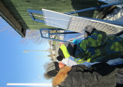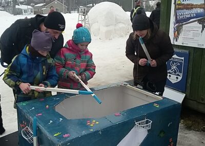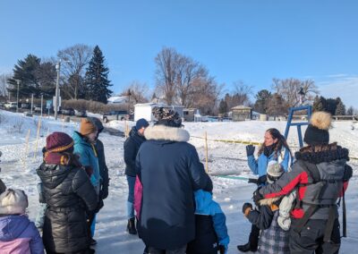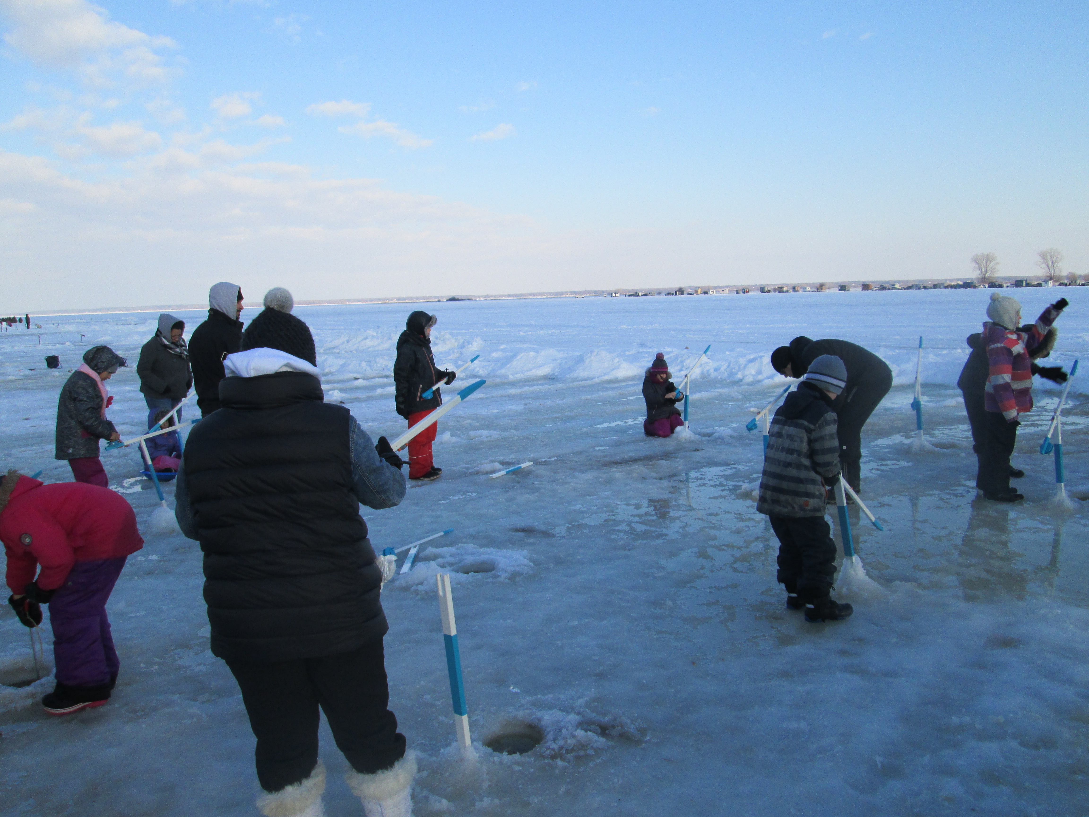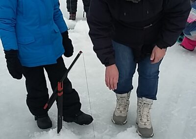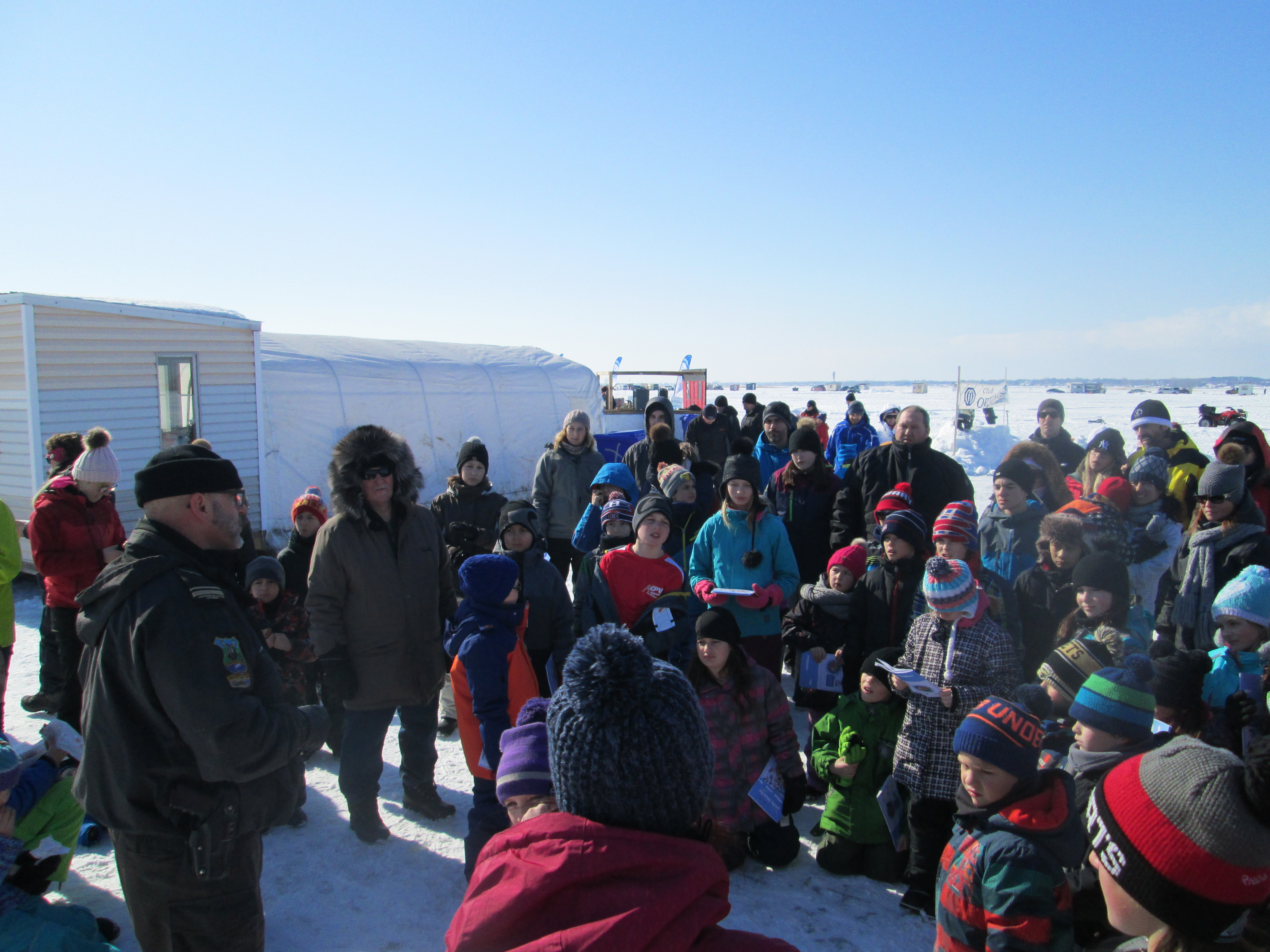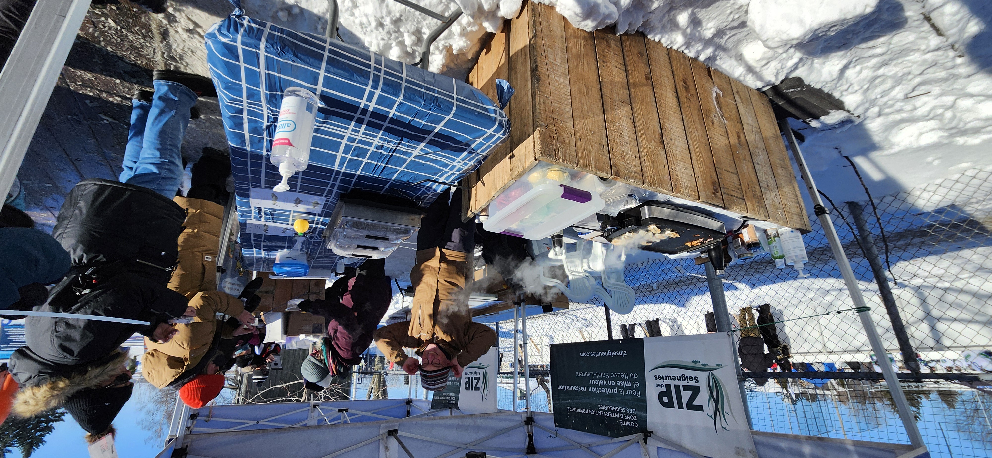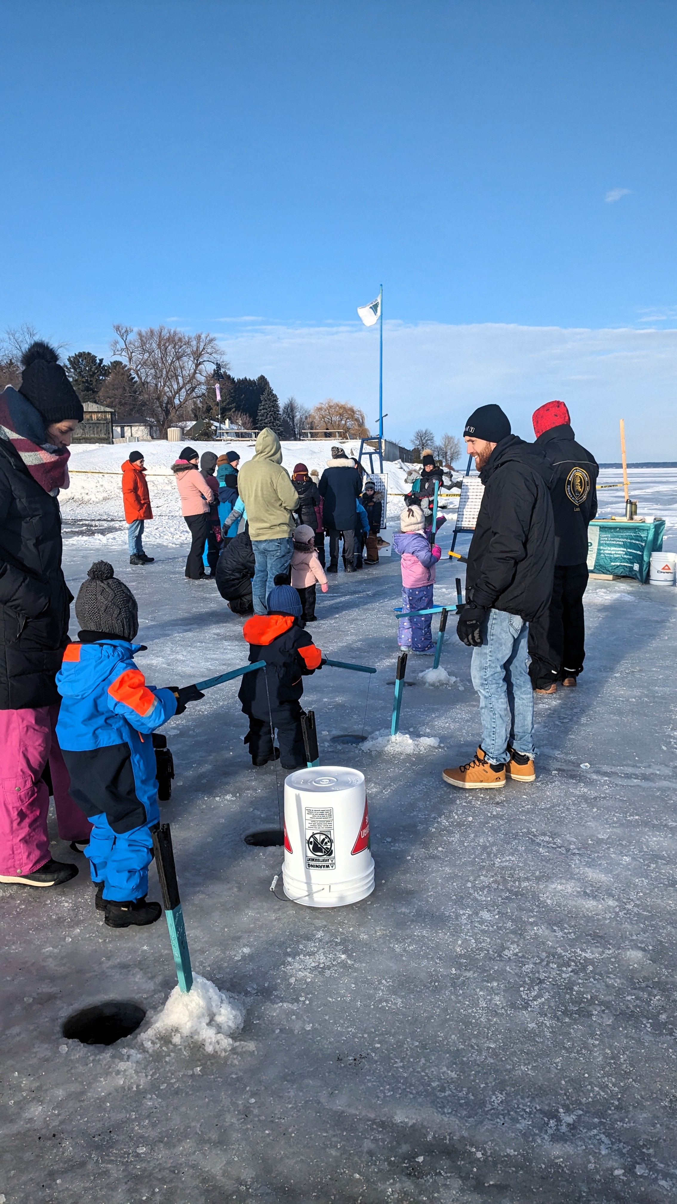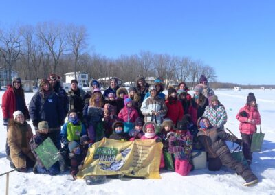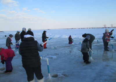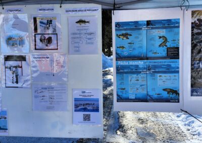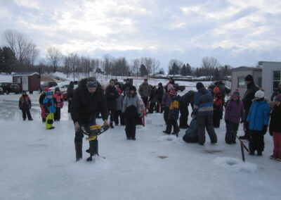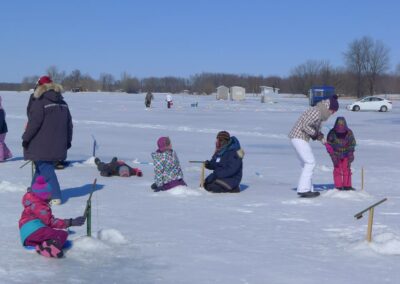 Dans le cadre de notre mission de protection et de mise en valeur du Saint-Laurent, nous faisons la promotion de la pêche blanche comme une activité écoresponsable et accessible à tous. Chaque hiver, nous participons à des événements grand public, en collaboration avec les municipalités de notre territoire, notamment à Lavaltrie lors de la Féérie d’hiver. Nos kiosques permettent aux visiteurs de s’initier aux techniques de pêche sur glace, de découvrir les bonnes pratiques pour une pêche durable, d’en apprendre davantage sur les espèces du fleuve et même d’y goûter grâce aux dégustations offertes.