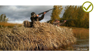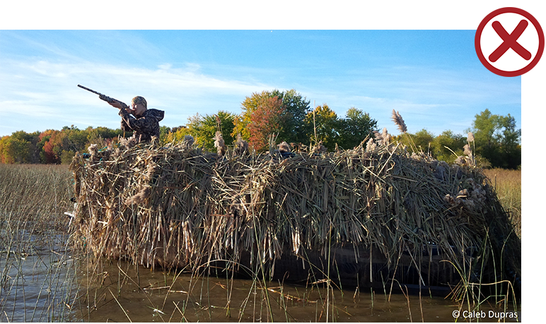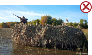 Prisé par les chasseurs pour le camouflage des caches, cette pratique entraîne de nombreux problèmes environnementaux. Le phragmite peut s’implanter rapidement et facilement dans un nouvel environnement grâce à un seul fragment. En coupant et en transportant les tiges sur leur bateau, les chasseurs entraînent la dispersion et la prolifération des plants dans des milieux non contaminés.